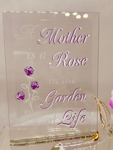 • Embossed with the quote: "A Mother is a Rose in the Garden of Life"