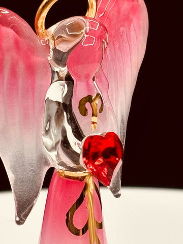 Share a meaningful message of faith and love with this handcrafted Red Angelique figurine. The glass angel holds a heart-shaped red crystal and features air-brushed details accented with genuine crystals and real 22Kt gold.