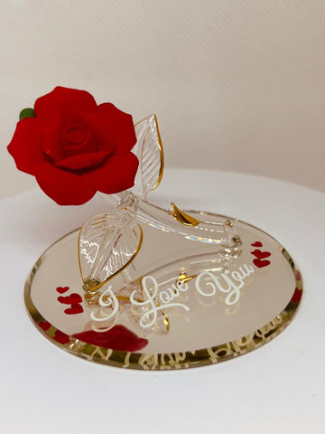 “I Love You” Red Rose Figurine | Handcrafted Glass Rose with Gold Accents