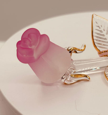 Pink Rose “I Love You” Figurine | Glass Flower Gift Display Décor