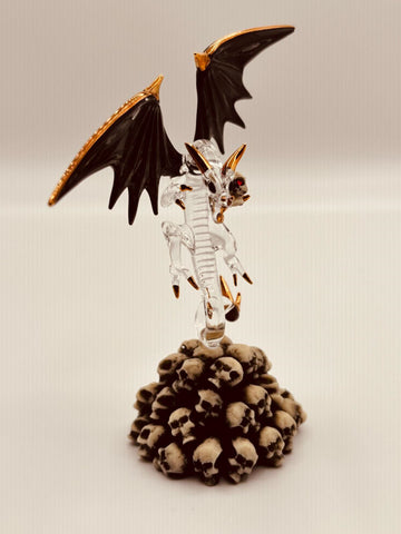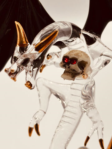Skull Crusher Dragon Glass Figurine | Handcrafted Fantasy Decor with Skull