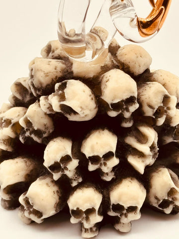 - Handcrafted dragon holding a skull standing on a pile of skulls