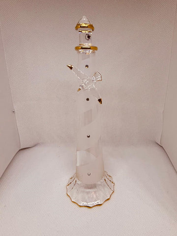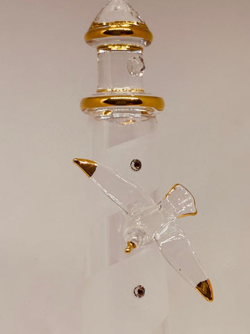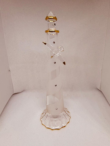 Spiral Lighthouse with Sea Gull, Tall Coastal Figurine with Glass & Crystal