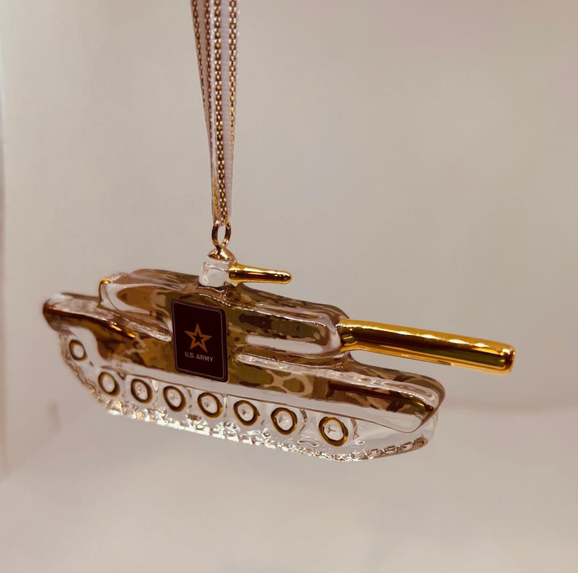 Handcrafted U.S. Army Tank Glass Ornament Official Military Licensed Christmas Decoration