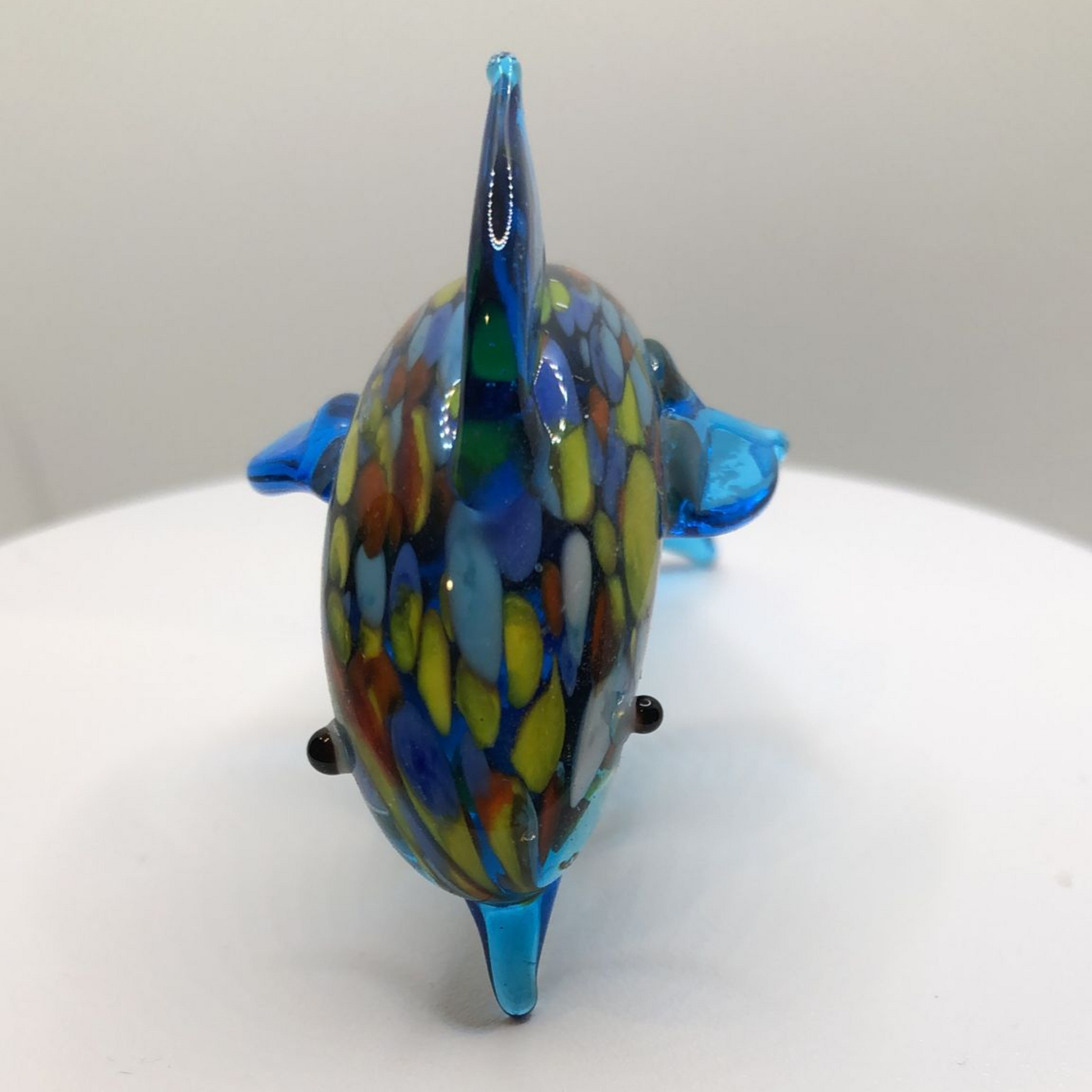 - Handcrafted glass dolphin figurine