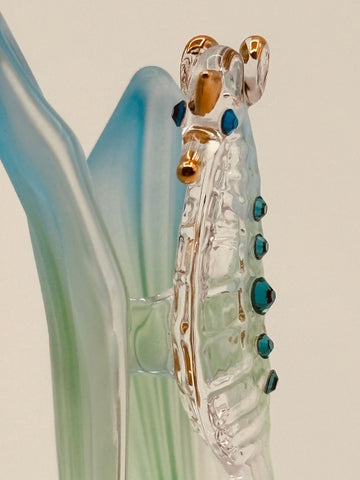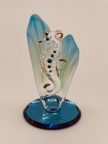 Sea Horse in Sea Grass Glass Figurine | Handcrafted Ocean Decor with Crystal and Gold Accents