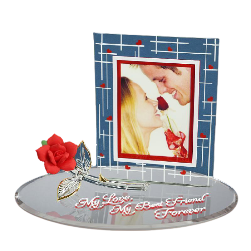 Rose Photo Frame Figurine | Romantic Glass Rose Frame for Love & Memories