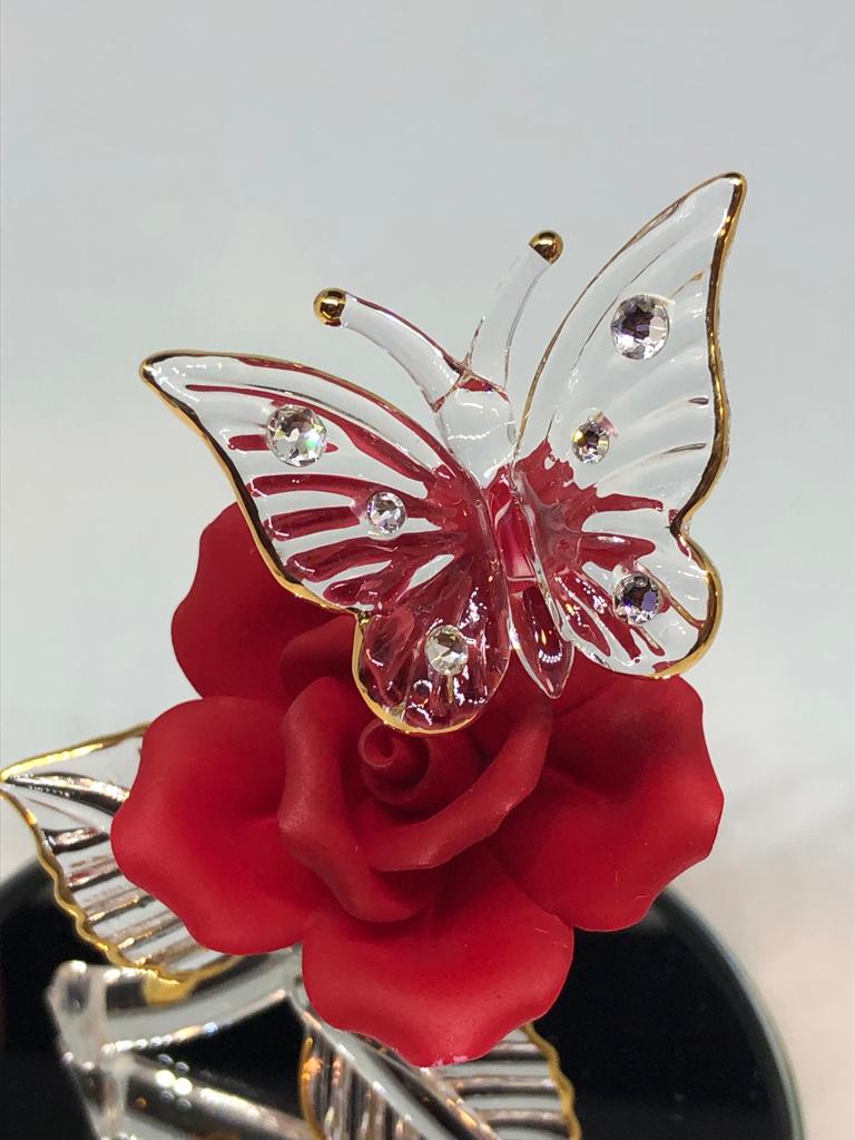 Handcrafted figurine of a butterfly and red rose
