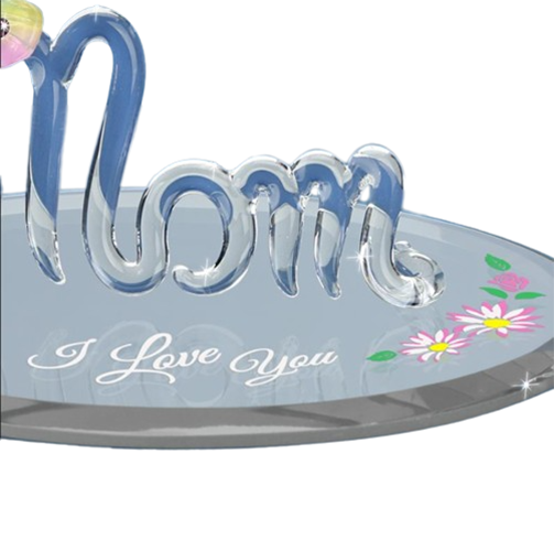 Celebrate your love for Mom with this beautifully handcrafted glass figurine. Featuring a rainbow-hued butterfly resting on a 3D “Mom” design, it’s a heartfelt keepsake that expresses appreciation and love.