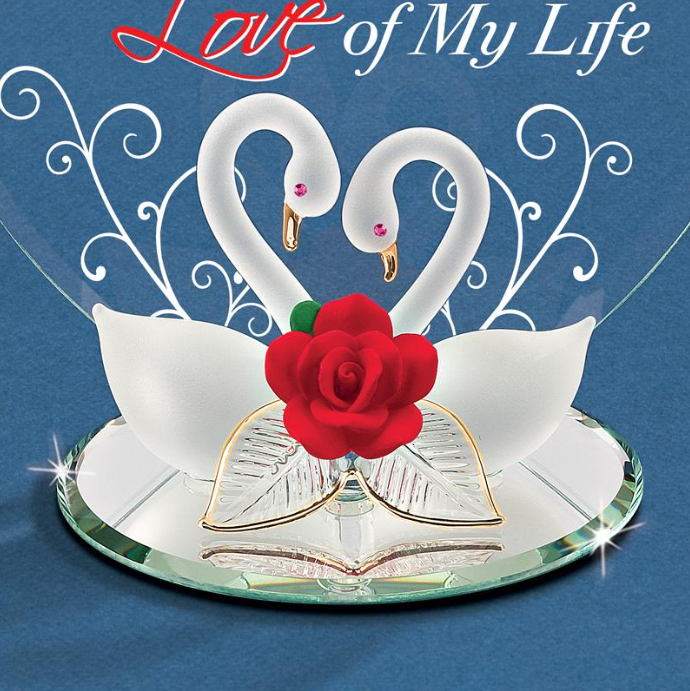 Love of My Life Swans Figurine | Handcrafted Glass Swan Couple with Rose